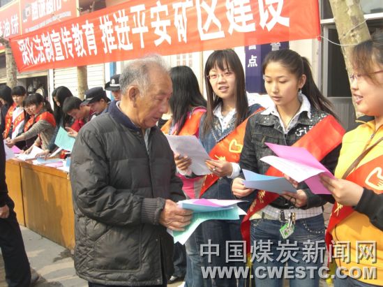 本网讯 为认真贯彻党的十七大精神,增强职工家属的法制意识,4月17日,山东肥矿集团陶阳矿团委组织青年志愿者20余人走上街头,来到职工家属身边讲解法律知识,受到广大职工家属的欢迎。