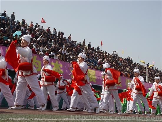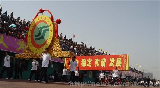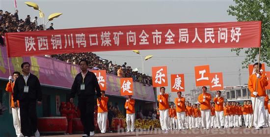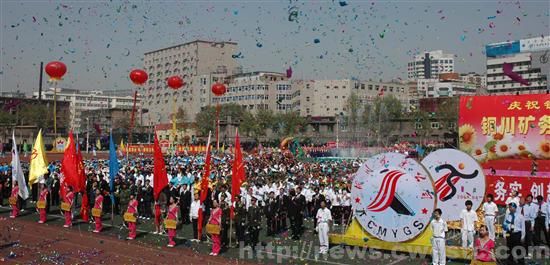 本网讯 4月28日,陕煤化工集团铜川矿务局在铜川市体育场,隆重举行该局首届职工运动会开幕式,局属29个矿(处)级单位、5000多名运动员身着体现企业精神的运动装,列队进入开幕式现场持续长达1个多小时,中国煤矿体协主席许金山、副主席兼秘书长戴璐强以及陕西煤矿工会、陕西煤业化工集团、铜川市、铜川矿务局的各级领导参加。 中国煤矿体协主席许金山致贺词说,铜川矿务局在北京奥运会到计时100天之际,隆重举行首届职工运动会,此时也恰逢煤城铜川市建市五十周年,意义十分重大。是喜迎奥运,也是展示我国煤炭职工精神风采,提高全民体育健身水平,活跃职工文化生活的一次盛会…… 运动会共设田径、大众体育、男女篮球、乒乓球、羽毛球、广播体操、越野赛、拔河、象棋、围棋、门球等11个比赛项目。共角逐61枚金牌。该局20余万职工家属也将激情参与。煤城铜川市领导说:“铜川矿务局建局50多年来,举行首次全民参与的盛大运动会,项目之多,规模之大,规格之高,在铜川市史无前例。这不仅是为国家煤炭事业作出卓越贡献煤城人精神的体现,也是全市群众文化体育生活中的一件大事、喜事,是我们迎接北京奥运会的一项重要活动,也是铜川矿务局为铜川建市五十周年献上的一份献礼。” 图为开幕式演出盛况 ![]() ![]() ![]() ![]() ![]() ![]() ![]() ![]() ![]() ![]()