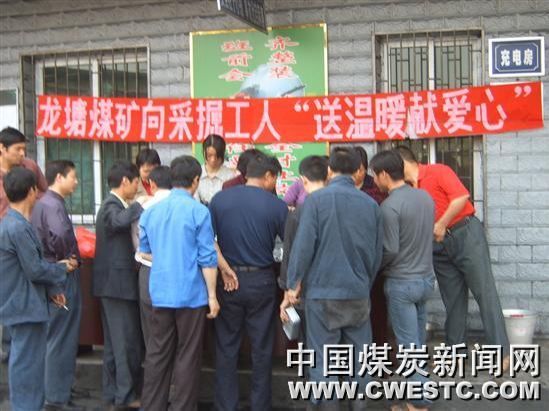 白沙欢度第十七个采掘工人节来     本网讯 时值农历3月3日(4月8日)值白沙矿区第十七个采掘工人节来临之际,湖南省煤业集团白山坪公司龙塘煤矿龙塘矿工会为了弘扬采掘工人吃苦耐劳、无私奉献的精神,特开展“您采乌金我献爱心”活动,在4月7日一天,办公室人员就捐赠爱心款近千元;女工及家属为采掘工人送来野菜煮鸡蛋400个,鞋垫底300双,嘱咐员工搞好安全生产。