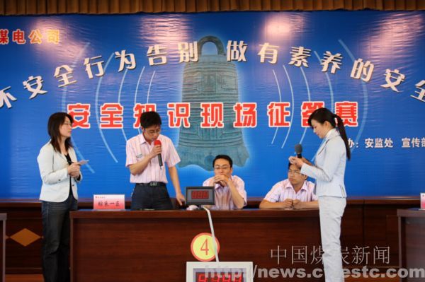 图文:淮北临涣煤电举办安全知识征答赛     【本网讯】 5月14日上午,安徽淮北临涣煤电公司在北四楼会议室举办“与不安全行为告别,做有素养的安全人”安全知识征答赛活动。来自采煤一区、修护区、通风区、综采一区、掘进二区、机电科和调度所组成的7支代表队共21名选手参加征答赛。经过必答、互选、抢答、风险四个环节的较量,最终,调度所代表队以240分的总成绩轻松摘得比赛桂冠。