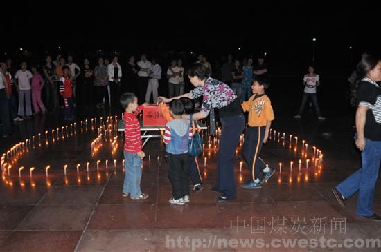 5月19日晚,湖南资兴矿业集团总厂区居委会在广场点燃心型蜡烛祭奠四川汶川大地震亡灵,并举行捐赠活动,闻讯而来的幼儿也纷纷伸出援手,以示爱心。