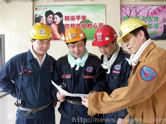 【本网讯】 5月22日上午,安徽淮北桃园煤矿副井口侯罐室内,该矿安全监察处和综采一区的负责人在入井前又一次开了“碰头会”,对原煤回采期间的安全工作再次进行落实。四川汶川大地震发生以后,该矿广大干部职工严格抓好矿井安全生产,生产优质的电煤保障迎峰度夏,以实际行动支援灾区建设。 图为该矿安全监察处和综采一区的负责人在入井前落实安全工作。