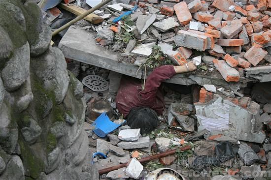 本网记者摄:芙蓉集团救援队抗震救灾现场图片记实