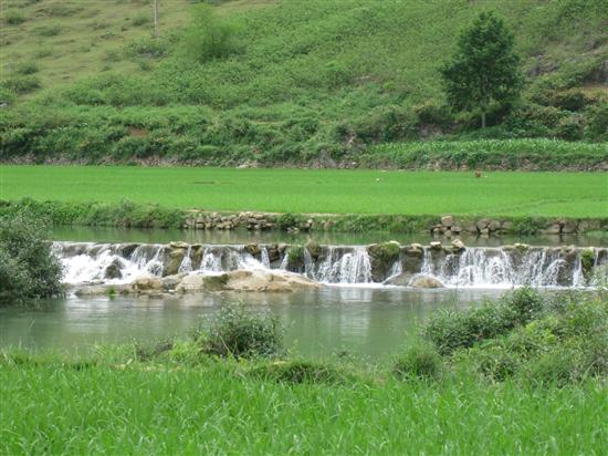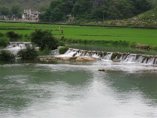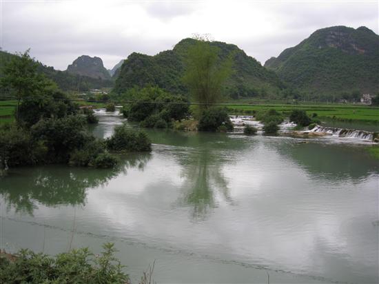 黄桂莹摄影:德保县小西湖风光     广西德保县的小西湖位于鉴河上游,距县城5公里,距德保至靖西的二级路1公里,水面宽阔,河水清澈照人,河边、沙滩古树苍翠,景色秀美,在西南面有一片宽广的粮田,四周奇山环抱,山水相映,美不胜收,故被称之为“小西湖”。