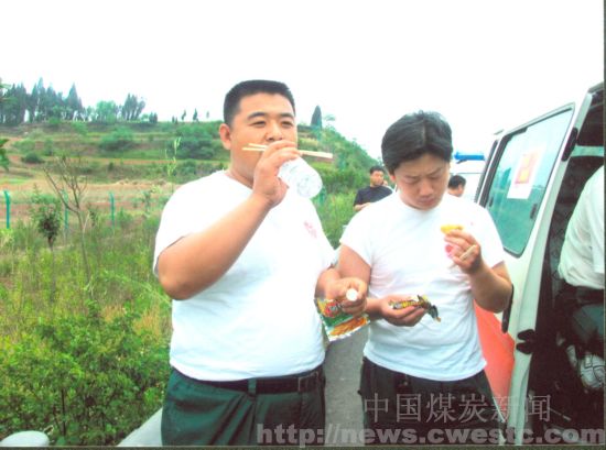 时间: 地点:集团公司招待所西一楼会议室。 这一刻没有悲伤,有的只是喜悦;这一刻,没有了凝重,有的只是轻松。随着山东淄矿中心医院救护车司机沙重和张岩从救灾一线的平安归来,让许多牵挂着他们、一颗颗悬着的心放了下来。集团公司党委副书记张道纶,工会主席孙明波,代表十万淄矿人,欢迎他们凯旋。前后26天的救援行动,沙重和张岩行程近万公里,转运伤员118人,接送医疗专家、防疫人员60余人,输送物资5批,圆满地完成了上级交给的任务。而这26天里的一幕幕将永远刻在他们的脑海。 生死时速