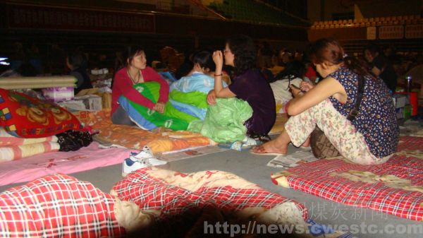 晚上临睡前,曾红又来了,说:我再给你们反映一个问题。声音依然很小。我们说啥问题你说。她说,我今天去医院看病,人家说,再给你看两次,以后就要自己出费。你们说他们说的对不对,我这脑壳是地震打了的。我们说,应该不会吧。大家遭灾了、受伤了国家会给医治的。不过这我们也不好说,不知道是医院的人和她开玩笑,还是国家真有这样的政策。说罢,曾红又很客气地说,谢谢,谢谢。 由于人多吵闹,凌晨3点和扬起来写采访笔记,刚写了不一会,曾红又悄悄地站到他的桌子对面说:我再给你说一个问题。和扬说,现在人都睡觉,你也睡去吧,曾红说,我睡不着,地震后,整晚整晚都睡不着。她又悄悄地说,我只说一点,我们灾民都想有一个家。和扬说:“我们知道,我们理解,你快睡觉去吧!”曾红说好、好,双手向和扬作着揖。后来,她就和一个值班的志愿者一起坐在那里看书去了。 到天池煤矿我们说起曾红的事,他们说以前很正常,地震后可能是受了惊吓,心理上出现了问题。是啊,象曾红这样的人,地震后肯定不是个小数,因而很多地方给予这样的人进行心理医疗。我们不知道德阳体育中心安置点有没有开展这项工作,我们希望曾红能从这种惊吓中早日解脱出来,健康快乐地生活。
