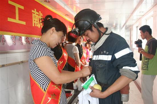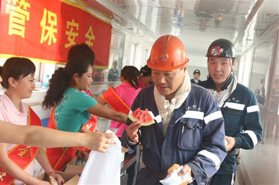 本网讯: 为充分发挥女工及职工家属的安全协管作用,6月27日,大明矿工会组织女工及职工家属分别在立井、斜井入井长廊开展了“送清凉 送祝福 送安全”井口慰问活动。活动中,女工及家属们为升入井的职工送上西瓜、苹果、牛奶,并为进行了钉纽扣、缝补工作服等服务。矿长李井坤、党委书记马克辛亲手为升入井的职工系上带有“安全生产”字样的毛巾,并叮嘱他们时刻牢记安全生产,使一线职工切实感受到了矿党政的关怀与温暖,使他们真正的意识到他们的安全就是家人最大的幸福。与此同时,该矿工会还组织该矿文艺骨干,在斜井井口信息中心,举行了歌曲、快板等小型文艺活动。![]()