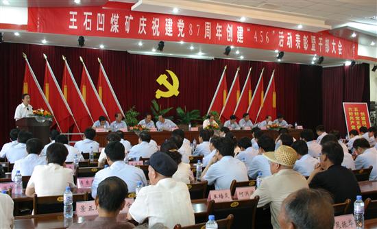 ] 6月30日上午,陕煤化集团铜川矿务局王石凹煤矿召开创建“456”活动表彰会。对一年来发挥先锋模范作用和战斗堡垒作用的3个“四好班子”、4个“五好党支部”、64名“六好党员”和9名优秀党务工作者进行表彰,旨在以先进模范人为榜样,推动各项工作顺利进行。据了解,今年上半年王石凹矿各项工作都取得优异成绩。