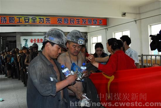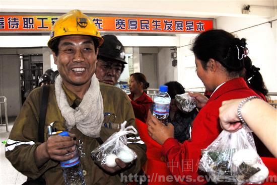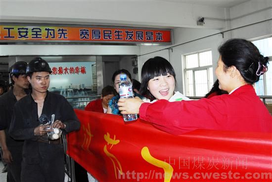 本网讯 端午佳节到来之际,安徽淮浙煤电公司顾北煤矿积极组织女工到井口慰问节日期间坚守岗位的职工。