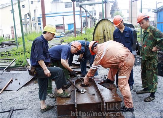 任楼煤矿产销部员工通过开展修旧利废活动,每月从废弃配件堆里拣回可利用设备配件价值资金近万元,极大降低了企业生产运营成本。 图为该单位机修工正冒雨对回收的铁路牵引系统配件进行修复再利用。
