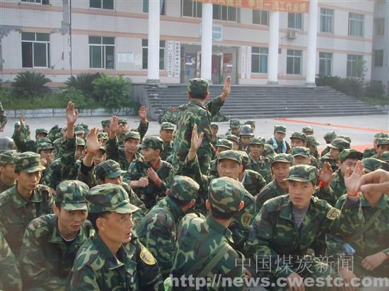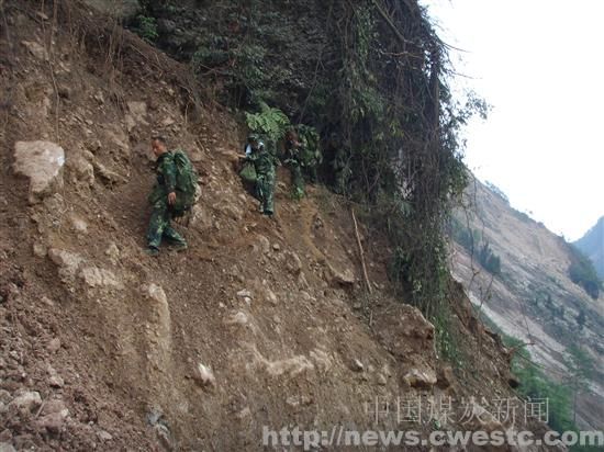 ![]() 川煤集团威远煤矿保安分队的卢永红、林雪松、董国华、刘凯、杨成东,编入威远县民兵应急连,参加了5.12赴绵阳安县抗震抢险,5月15日,从晓坝镇出发,徒步穿越被称为“死亡线”的30多公里高山峡谷,向地震后交通、通讯中断、与外界完全隔绝的茶坪乡挺进,执行紧急侦查、救援任务。 川煤集团威远煤矿保安分队队长卢永红担任旗手,始终走在队伍的最前面,部队成一路纵队开进,由于地震破坏,原有的道路早已不在。一路上余震频繁,不断的有山体滑坡、泥石飞溅。他们在乱石沟壑间冒着生命危险,经过10余个小时的强行军,终于穿过 “死亡线”,在无一人伤亡的情况下到达了目的地——茶坪乡。在第一时间,将灾情传递了出去,设置直升机空降地点等。 率先举手的川煤人