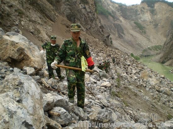 ![]() 这是一张看起来不起眼的照片。5月16日早上7时,地点在茶坪乡政府前。这些刚刚徒步穿越被称为“死亡线”,从晓坝镇到茶坪乡30多公里高山峡谷后的突击队员,接到内江军分区领导命令:威远民兵突击队立即挑选20名官兵到7公里外的东易村养猪场抬发电机回茶坪乡,以解决茶坪乡急需的通讯电源和重新设置直升机空降地点,其余人员负责将老百姓带出茶坪乡。部队领导要求自愿报名。退——将更加安全;进——将面临更多危险!大家已经是精疲力竭,还要再次冒着余震不断的危险翻越几座大山。这时,川煤集团威远煤矿保安分队的卢永红、林雪松、董国华、刘凯、杨成东,在近100名队员中率先举起了手!他们和其他队员一道,圆满的完成了任务。 ![]()
