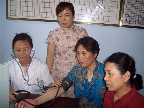【本风讯】 近日,山东煤机集团莱芜煤机公司对全公司13个单位的400余名已婚女职工、家属进行了免费查体。共有三个检查项目,历时20多天。目前,对查出有病的职工已及时安排医治,确保了广大妇女的身心健康。图为该公司职工医院医师正在为女工测量血压。