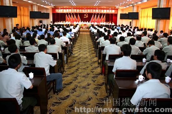【本网讯】 7月3日,陕西铜川矿务局在煤业宾馆隆重举办了学习党的十七大暨局“三会”精神知识竞赛。全局29个单位中,有25个单位组队参加,先后在下石节矿、东坡矿、中心医院进行了三场预赛,决出了9支代表队进行决赛。