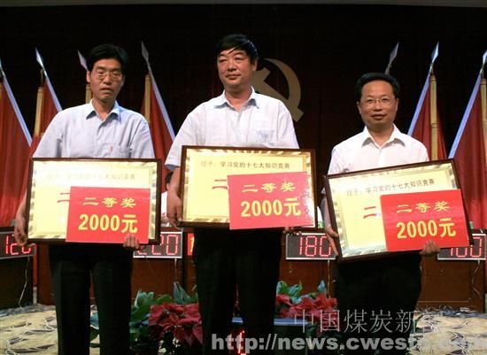 经过激烈的角逐,进入决赛的9支代表队中华瑞公司夺得一等奖;陈家山矿、徐家沟矿、东坡矿荣获二等奖;下石节矿、直属机关工委、铁运公司、王石凹矿、多经公司荣获三等奖;中心医院、东坡矿、下石节矿取得优秀组织奖。 组图为竞赛决赛剪影。 ![]() ![]() ![]()