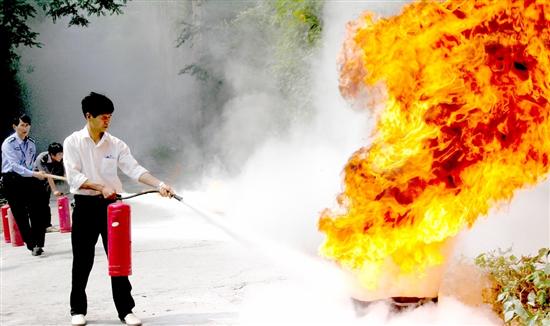 本网讯 近日,川煤集团达竹公司斌郎煤矿针对夏季气温高、风大物燥、各种导致火灾的不安全因素增加、火灾发生几率和扑救难度大等特点,对矿区72名专兼职消防人员进行了消防理论知识和灭火技能培训,特邀达州市消防支队官兵现场授课和实战灭火演练。通过培训,使矿区职工进一步掌握了消防安全和自救逃生的方法,明确了消防安全的责任和义务,提高了对消防安全重要性的认识。图为实战灭火演练场景。