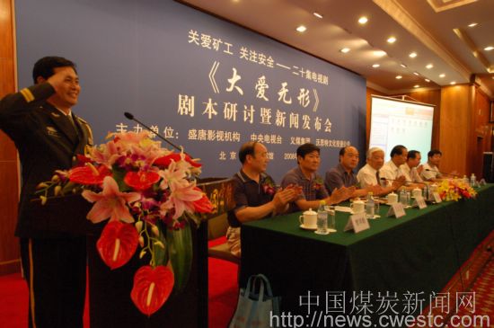 功救援事件为背景、反映关注矿工安全、关爱当代煤矿矿工生活为题材的20集电视连续剧《大爱无形》剧本研讨暨新闻发布会于7月29日在北京钓鱼台国宾馆召开。全国九届政协副主席王文元、国务院侨办副主任张伟超、原广电部副部长何栋材、中宣部宣教局副局长刘树新、全国总工会劳动保护部部长汪忠汉、国家安监总局副宣教中心副主任李建国、本剧总导演翟俊杰、制片人邵学忠、本据编剧康桥、原义煤集团副总经理贾学勤、集团公司领导宋建华、张新伟及有关专家、学者,社会各界人士,“7.29”透水事件参与救援与获救者代表曹百成等50余人参加了研讨会。 2007年7月29日,河南陕县支建煤矿因地面洪水溃入井下造成巷道被淹六十九名矿工被困井下,国家安全生产监督管理总局和河南省有关领导迅速赶到现场确定了科学施救方案,以义马煤业集团公司干部职工等为骨干的抢险人员,经过76小时的奋战69名被困矿工于8月1号中午全部平安脱险,是我国煤矿抢险救援成功的范例。盛唐影视机构以“7.29”成功救援事件为背景创作了20集电视连续剧《大爱无形》,并经多次修改,数易其稿。在“7.29”透水事件成功救援一周年之际,盛唐影视专门召开了研讨会,邀请中宣部、广电总局、国家安监总局、中国文联、义煤集团参与救援人员及被救矿工代表等对剧本进行研讨。 贾学勤简要介绍了义煤参与7.29透水事件救援的事情经过。他认为《大爱无形》剧本在完善中要充分考虑体现党和政府以人为本的思想;注重彰显国有大型企业的社会责任感;要处理好纪实和电视艺术的关系,增强电视剧的观赏性。同时,在技层面上要突出科学施救这一救援成功的法宝。 《大爱无形》编剧康桥介绍了剧情创意及故事简介。总制片人邵学忠、总导演翟俊杰就该剧的创作背景、创作过程、思想内涵、艺术表现手段、剧组筹建工作等方面作了说明。中央电视台特约编剧、著名作家吴因易、中国传媒大学教授索亚斌、解放军艺术学院文学系原政委谭友鹏等赞扬了义煤在“7.29”透水事件救援中的出色表现,对《大爱无形》电视剧剧本给予了充分肯定。同时,他们对剧本的进一步完善提出了指导意见,共同为拍摄好这部电视剧出谋划策。拍摄方认真听取了各方面的意见,预计研讨会后将用一个月时间锤炼剧本、完善建组, 9月份在义煤开机拍摄。 刘树新希望编剧和有关专家在创作中从实际出发,把握好细节,用细节打动人,并通过大家的不懈努力拍摄出反映时代主旋律的好作品。