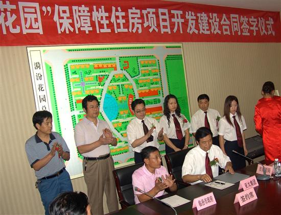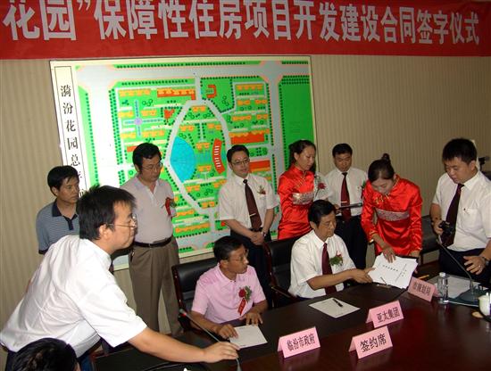 本网讯:2008年8月28日上午,由临汾市人民政府、亚太集团举行的首期保障性住房------“漪汾花园”保障性住建设合同签约仪式在唐尧大酒店召开。