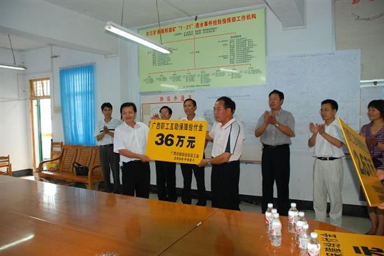 广西自治区总工会送互助保障金给“7.21”透水事故遇难职工