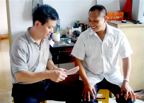 1983年初,仅有初中文化,刚满18岁的郭勇满怀憧憬来到矿山,从一位掘进工做起,脚踏实地,经过20多年的奋进和磨练,取得了大专学历,高级政工师职称,并从基层团支部书记,团委书记、组干科科长、党委委员……,步步坚实走来,2005年9月任选为绿水洞煤业公司党委副书记、工会主席。“当上了‘职工家长’,理应做职工最信任,最受拥戴的人。”近年来,他把对职工的关爱,化着对矿山的报答,践行着自己的“主席理念”。 2007年初,运输队青工刘可华骑摩托车不幸摔伤,住进医院七天七夜昏迷不醒,医治不好,很有可能成为植物人。原本家中唯一的劳动力倒下了,上有老,下有小,一家五口基本的生活都失去了来源,那还有钱做治疗。郭勇第一时间得知此情,便立即赶到医院看望,亲自送去了工会的特困慰问金和私人捐赠款上千元,并在全公司员工中发起了一场为刘可华“献爱心”募捐活动。在他的倡导下,全公司职工纷纷踊跃解囊,先后共计收到公司各类捐款万余元,并及时送到了刘可华手中,带去了组织的关爱和温暖。在队党政、及公司工会的大力帮助下,刘可华终于渡过了险情。刘可华从昏迷中醒来,见郭主席站在他床边,关切地对他说:“什么都别想,安心治疗,有困难尽管给我说,工会就是你的家,娘家人会帮助你的。”刘可华默默无语,两行热泪夺眶而出。为了使职工发生意外时,均能得到及时救助,郭勇为此而提出并在公司实施建立了“职工意外伤害储备金制度”:让职工每人缴纳50元作为储备金,谁出现意外伤害都可以借资1000----20000元用于救助。这一方案的出台,到了全公司职工的一致认同,目前已有人1899人参储,收缴储备金94950元,现在已有9人次借资,借出储备金28000元。为解决职工暂时困难,发挥了极大作用。 病亡职工的遗孀,一位70岁的祝老太太,由于老伴早年去逝,自己又患有精神病,每月仅靠100多元困难补助金生活,加之儿子收入不多,不能给予多少补贴,家中一贫如洗。由于患病,祝老太常常脾气不好,邻里们认为她蛮不讲理,不愿与她交往,成了十里矿区有名的“扯筋婆”,但只要是郭勇的话她都会听,因为家中凡遇难事,她总会找到郭勇,他也总会力所能及地帮她解决。为此,祝老太逢人便说:“郭主席真是个好人”。过年了,郭老太不知怎样感谢他,便提着一篮鸡蛋到郭勇办公室,肯求他收下,郭勇说什么也不收:“你的心意我领了,鸡蛋留着自己补身体吧,就算是我孝敬你老人家的。”国庆节是祝老太70岁生日,她真诚地邀请郭勇到她家做客,他满口答应:“到时我一定去给你敬酒,祝你寿比南山。” 元旦、春节期间,郭勇总要督促工会工作人员对特困职工、工伤、工亡职工家庭、病故职工遗属生活状况进行详细调查摸底,做到“走访慰问到位,补助发放到位,生活安排到位”。今年元旦、春节通过分工会摸底调查,对核实的59户贫困职工家庭进行了慰问,发放慰问金14,391元;为退休、病亡职工家属发放困难补助2100元;积极争取上级政策,为公司19户特困职工申请省属国有重点企业扶贫特困金43800元;为让职工过好生日,郭勇建议建立了职工生日慰问金制度,工会为每位职工特制了生日慰问贺卡,由分工会主席、党支部书记在职工生日的当天亲临职工家里,将生日贺卡和200元现金送到职工手中。这一举措深受职工赞誉,让职工真正感受到了工会大家庭的温暖。近两年,公司共送出职 工生日贺卡3000余份,发出慰问金60余万元。 近年来,公司工会还投资数百万元,为职工办理了众多实事:为各作业场点免费供应“乐百氏”矿泉水,保障职工生产场点有干净卫生的水喝;改造澡堂取暖设施,保证下井职工洗澡不受凉;为全公司职工进行健康检查,对解除劳动合同职工进行职业病检查,保障进出职工身体健康,减少劳动争议;履行职工带薪休假制度,组织优秀班组长、生产骨干及20年以上老工人外出旅游,提高职工生活品位等等,真是点点滴滴为职工,件件实事总关情 图为郭勇(左)深入贫困职工家中