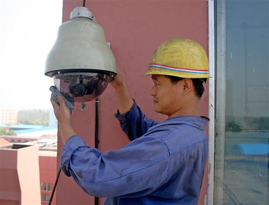 本网讯 山东淄矿集团葛亭煤矿为加强矿区内部治安管理和地面生产经营秩序,对可视监控系统进行了扩容和升级。在原有的基础上分别在煤场、矸石山、宿舍楼、井口、工业广场等要害部位增设了11组可视监控设备,使整个矿区可监控覆盖面达到了98%,基本不留死角。有效保障人员及财产安全和遵章作业,减少了各类事故案件的发生率,进一步完善了本单位的防控体系,为确保矿区的安全提供了有力保障.图为:工作人员正在擦拭刚刚调试完毕的摄像头。