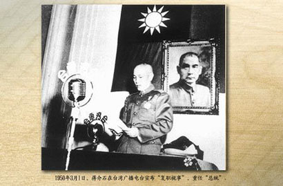 ![]() 1950年3月1日,蒋介石宣布在台湾恢复“中华民国总统”的职务。 ![]() 蒋氏父子 台湾孤岛目前的形势,蒋介石是十分清楚的。他败退台岛后,曾希望美国能伸出手来,给予援助,但现在这种希望已经破灭。中共军队将随时进攻台湾,而他手中所能掌握的军队已是七零八落的散兵游勇,怎能抵御中共大军的进攻呢?台湾岛内,经济秩序已被搞乱,生产失调,商品奇缺,物价高涨,通货膨胀,几百万人口的生计面临危机,如不尽快改善,将重蹈大陆时代之覆辙。他必须采取强硬措施,才能维持这最后一块领地。这天,蒋介石父子在涵碧楼呆到很晚才回,蒋介石心中已经有了一套统治台湾的计划。 1950年3月1日,蒋介石宣布,他在台湾恢复“中华民国总统”的职务。他自1949年2月辞去总统职务后,仅是国民党总裁,到台湾后,李宗仁远在美国,他成为台湾事实上的独裁者。但以“总裁”名义发号施令,毕竟是名不正、言不顺,因此他自行宣布恢复“总统”职务,当然得加上所谓“顺应群情”之类的话。这不过是他经常玩弄的政治把戏而已。 蒋介石复职后的迫切任务,便是安定内部,为此,必须进行新的人事安排。在新的人事安排中,蒋介石确立了一条原则,那就是确保蒋经国的地位稳固、顺利迁升。依照这一原则,蒋介石任命陈诚担任行政院长,吴国桢为台湾省主席。三军高级领导人也同时易人,任命孙立人为陆军总司令,周至柔为参谋总长兼空军总司令,桂永清为海军总司令。 一切任命完毕后,蒋介石给蒋经国留下的位置是国防部总政治部主任一职,这一官衔虽然不高,但他交给儿子的权力却超越三军统帅,即负责“监督筹划情报业务,对大陆游击活动的派遣和指挥”。蒋介石觉得这还不够,便又在“总统府”里设了一个“机要室资料组”,也让蒋经国负责,“举凡一切党政特务机构,统归其管辖、指挥”。这样一来,逃到台湾的一大批国民党元老如何应钦、阎锡山、陈果夫、陈立夫、顾祝同、白崇禧等纷纷遭到贬逐,台湾又成了蒋家的天下。 新的人事安排大体就绪后,蒋介石就腾出手来,整顿社会秩序。为了防止共产党的渗透,他提出“保密防谍”的口号。在此口号下,出动大批警察、宪兵、特务、军队,开始了大逮捕、大屠杀。只要行动可疑,经人检举,一概列入危险分子,格杀勿论。位于台北市郊植物园附近的马场町,取代了过去南京市郊雨花台的地位,大批的危险分子在这里遭杀害,屠杀“革命者”的枪声,不断从这里传出。台北市青岛东路的军人监狱和台东绿岛监狱,成为最大的两个集中营,有“通匪嫌疑”者,一律送往这两个监狱。整个台湾岛上,一片腥风血雨。在经济方面,蒋介石为了海岛上不再发生中共在大陆掀起的土地革命,开始实行“三七五减租”的“土地改革”。本来,在大革命年代和抗日战争时期,中国共产党曾促使和希望国民党政府实施孙中山的“二五减租”政策,但都遭到蒋介石的坚决拒绝,如今亡命台湾,为了这最后一块生存栖息之地,蒋介石忍痛实行了。 1950年,中国人民解放军相继解放了海南岛和舟山群岛,这等于割断了台湾的手足。解放军的下一步,必将是渡海解放台湾,这是中国共产党的既定方针。还在1949年3月15日,新华社发表的时评《中国人民一定要解放台湾》中就指出:“中国人民解放军斗争的任务就是解放全中国,直到解放台湾、海南岛和属于中国的最后一寸土地为止。”海南、舟山等岛屿解放后,人民解放军积极做好各种准备,以利在适当的时机进攻台湾。在这种情况下,台湾又一次陷入混乱。 5月16日,蒋介石为了给部下鼓气,发表了一篇题为《军人魂》的演讲,这篇演讲重弹“革命军人”“不成功便成仁”的老调,声言台湾一旦陷落,他决定以身“殉国”,表面上慷慨激昂、气壮如牛,实质上色厉内荏、胆小如鼠,让人一听就觉得可笑。 在蒋介石的带动下,国民党中央党部举行了宣誓仪式,“宣誓效死,确保台湾”。于是,各级党部也纷纷效尤,进行“宣誓”,发誓“以死保卫台湾”。5月27日,国民党《中央日报》发表社论说:“台湾是进入战时了!”指出“我们国家实在已到空前未有的危险时期,每个处在这个孤岛上的人也没有什么可以撤退和逃避的地方”,因此,要求“人人生产,戒除浪费,个个动员,参加战斗”,“保卫大台湾”。 为了“保卫大台湾”,蒋介石下令,沿海加建碉堡防御工事,组织防空演习,组织训练民众。他还指使蒋经国效法日本法西斯的“神风队”故伎,组织“反共敢死队”,整个台湾岛上,闹得沸沸扬扬,鸡犬不宁。然而,危殆中的台湾,却出乎蒋介石的意料之外,降临了转机。 1950年6月25日,蒋介石正吃早饭,蒋经国十分欣喜地进来向他报告,朝鲜战争爆发。蒋介石一听,高兴得眼泪直流,这场战争,确实给蒋介石带来了福音。朝鲜战争爆发后,美国为了保护它在亚洲的利益,建立整个东南亚防御体系,便重新把蒋介石拣回来,将台湾纳入其战略防御体系。美国武装干涉朝鲜内政,扩大朝鲜战争,同时派出第七舰队进驻台湾海峡,武装侵占我国领土台湾。蒋介石重新置于美国的保护之下,成为朝鲜战争的受益者。由于朝鲜战争的爆发,中国人民解放军基于形势的变化,放弃了武力解放台湾的计划。蒋介石避免了灭顶之灾,在惶惶不可终日中度过了危机。 蒋介石在台湾站稳脚跟后,一心要把权力传给儿子蒋经国,特别是随着年岁的增长,这种愿望愈是迫切。还在1950年时,