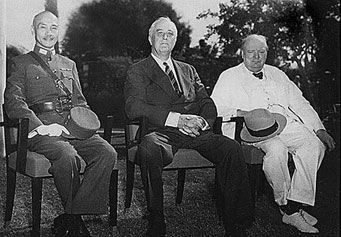 1943年后,战争态势越来越明显,盟国开始了战后的划分。蒋介石主张韩国、泰国以及越南等国的独立自主,甚至提出保留日本的天皇制度,蒋介石夫妇还亲赴印度,劝阻拉o甘地和尼赫鲁放弃自治的要求,团结一致抵御侵略。从日记中可以看到蒋介石为此做出的努力。此时美国将军史迪威与蒋介石在品性、隶属关系及其战略战术上的分歧,却造成了中国自开战已来最大的危机。两人的矛盾迅速变成中、美两国的误解。雅尔塔会议上,史迪威的报告,使罗斯福认为中国不具备反击日本的能力。最终以牺牲中国的利益换取苏联对日本的出兵。 ![]() 蒋介石(左)罗斯福(中)丘吉尔(右) 埃及当时是英国的殖民地,当年的11月22~26日,美、中、英三大国首脑会议就在这儿举行。英国首相丘吉尔、美国总统罗斯福和中华民国军事委员会委员长蒋介石参加了这次会议。会议主要是讨论制定三国联合对日本作战计划和解决远东问题。 在会上,三位领导人免不了互相夸奖客气一番。不过,蒋介石与丘吉尔面和心不和,这几年来,他俩的分歧越来越深。11月20日,蒋介石偕夫人宋美龄经昆明巫家坝机场乘专机飞越喜马拉雅山,在印度北方邦兰姆加尔盟军训练基地机场稍事停留,视察了全副美式装备的中国远征军部队,而后又乘专机飞到加尔各答。令蒋介石生气的是,英国驻印度总督只派出私人顾问到热浪灼人的机场迎候,也没在机场大厅铺红地毯,甚至没派出军乐队奏迎宾曲。 其实,丘吉尔不止冷落蒋介石,他还想谋杀蒋介石。他曾召集英军参谋长伊斯梅上将、陆军情报部长卡尔格特中将等人开秘密会议,并指定英国驻华大使馆陆军副武官查尔斯上校全权负责、相机行事。不过,该计划对英国外交部和英国驻华大使薛穆则严加保密。 随后,查尔斯组成特别行动小组,准备实施暗杀计划,并网罗了两名中国空军上校和几名英军军官。开罗会议召开前,查尔斯从伦敦弄回三枚最新式的微型高爆炸力定时炸弹,打算在兰姆加尔机场放在蒋介石的座机里。但蒋介石的警卫人员警惕性很高。有两名军统(戴笠领导)的上校带一队卫兵团团围住座机,不准任何人哪怕是中国空军军官走近,更别说英国、印度空军地勤人员了。然而,查尔斯上校发现美国14航空队的地勤人员似乎绝对受信赖。两名上尉机械师还被请来协助中国机械师检修飞机。这使查尔斯得到启发:“暗杀计划一定得有美国方面协助。” 丘吉尔等人想收拾掉蒋介石,是因为他们想保住大英帝国在亚洲的殖民地。二战中,英国一方面参加对日战争,一方面又对拥有庞大陆军的盟国——中国抱有强烈的戒心,唯恐中国扩展影响,以后称雄亚洲。英国还想染指中国领土西藏,一心想策动藏人独立,摆脱国民党中央政府,好从中牟利。另外,蒋介石为团结印度人民抗日,多次公开催促英国让印度独立。大半年前,宋美龄成功地出访了美国,却不去英国。她以“身体欠佳” 为借口,谢绝了英国的邀请。这使丘吉尔相当恼火。可见,他想干掉蒋介石绝非心血来潮。 会议开完后,蒋介石夫妇的专机先行回国。罗斯福总统派往重庆的最高军事代表史迪威将军没走,留下来就中国战场和缅甸战场的情况继续与罗斯福商量。史迪威与蒋介石失和已久,这在重庆高层已不是什么秘密。 史迪威一开口就是发牢骚:“总统阁下,你一定想不到蒋介石这人有多糟糕。他巴不得你调几十万美军到中国战场与日军拼个你死我活,他好保持自己的军力,用以对付中共及其武装……两个月前,我计划率中国驻印陆军4个师反攻缅甸,打过野人山。蒋介石却拒绝让全副美式装备的13个嫡系师从滇西进入缅甸配合作战。” 罗斯福听着,双眉紧锁:“蒋介石先生太固执、太自私,一点儿不顾大局……跟这样的人很难有效合作下去。我的上帝,这可真是个难题。”罗斯福考虑再三,对史迪威下令:“我理解你的处境。你如果无法与蒋介石相处,又无法换掉他,那就一劳永逸地把他干掉算了。” 几天后,史迪威带着总统的绝密口头指令返回中国,只向副手多恩准将作了传达,指示他具体执行这一任务,代号为“蓝鲸行动”。指令规定执行期限为三个月,逾期自动失效。