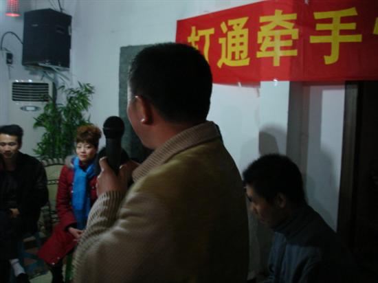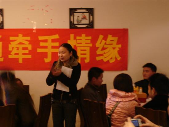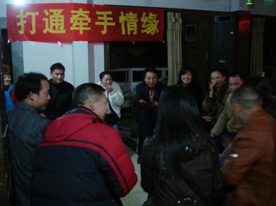 本网讯 2009年1月11日,打通牵手情缘服务站在打通荣安茶楼组织了联欢活动,来自松藻、同化、二矿、机修厂、石壕煤矿、重庆、打通等地共50人参加了活动,他们当中有20多岁的年青姑娘小伙,也有年近中年的单身男女。 打通牵手情缘服务站成立于2007年11月18日,是一个全心全意为矿山单身职工牵线搭桥的新型服务机构,到目前为止,己经有一对新人结了婚,另有几对也处于热恋中,站长胡燕说:“能为矿山的兄弟姐妹们办点实实在在的事就是最大的快乐,再艰难我也要走下去。”另有社区的两位志愿者阿姨她当上了红娘,松藻社区的红娘龙吉琴带队参加了今天的活动,为了使牵手情缘服务站更好的服务于大众,站长胡燕还特别聘请了打通镇妇联主任程新莲为名誉顾问,聘请了打通镇律师事务所的吴天权为法律顾问,开业一年多来,受到各界领导、局工会、以及打通地区各单位和广大群众的支持和理解,祝愿打通牵手情缘走得更好。