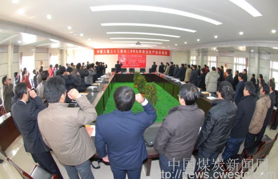 年全年安全生产工作后,中煤三建三十处党委书记带领全处一百多名副科级以上管理人员进行安全宣誓,为力争实现