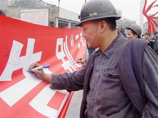 (本网讯)“遵章守纪,按章操作,上标准岗,干放心活,自保互保,永保平安……”1月12日,一句句铿锵有力的誓言飘荡在川煤杉木树矿区上空。这是杉木树矿业公司500余名班组员工参加平平安安迎新春安全启动仪式,矿工们纷纷承诺:告别三违,确保平安,以实际行动迎接新春。随着春节的临近,安全工作越发重要。杉木树矿业公司各班组员工纷纷制定安全规划、开展安全讨论、送安全祝福等安全活动增强安全意识,喜迎新春的到来,确保过一个平安、和谐的春节。图为班组员工们在“遵章守纪,告别三违”横幅上签名。