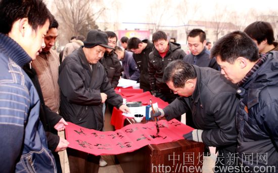 春节临近,山西潞安矿业集团常村煤矿组织了该矿书法爱好者到该矿社区,为矿工家属义务书写赠送新春祝福联。这些对联把企业兴旺、家庭幸福、安全生产等紧密地联系在一起,书写出了一幅幅和美、安祥、幸福之歌!据统计,共送春联5000余幅。
