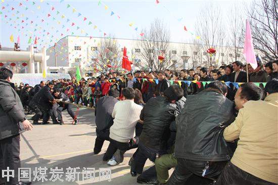 1月27日下午两点,陕西黄陵一号煤矿办公楼前彩旗飘扬,笑声不断。原来他们在这里举行“贺新春”拔河比赛。共来自基层区队的13支男子代表队和4支女子代表队参加了比赛。围观的职工家属不停地呐喊着“一二”、“加油”等号子,不但给参赛队员增添了力量,也给新年增添了喜庆气氛。经过激烈地角逐,综采一队、选煤厂、掘三队分别获男子一二三等奖。选煤厂、服务队荣获女子一二名。