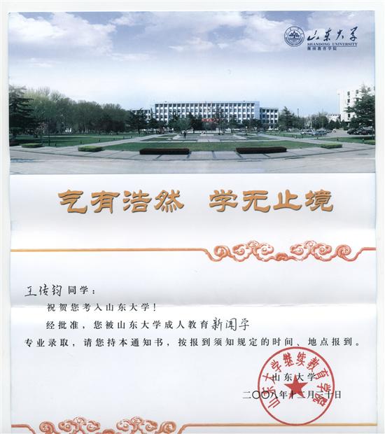 本网记者王传钧出书前考上山东大学新闻专业 | |||