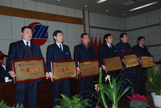 (本网讯)枣庄联创公司为确保09年的安全生产,面对当前严峻的经济形势,充分认识到搞好安全生产的极端重要性,摆在更加突出位置来抓,继续坚持“安全第一、生产第二”不动摇,系统推进安全长效机制建设,提升安全质量管理水平,以安全高效的优异成绩加快实践科学发展观。图为公司领导为安全生产做出卓越贡献的先进集体颁发荣誉奖状。