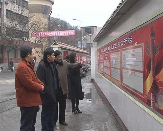 ![]() 宜宾市国资委副书记刘泽辉一行,首先参观了芙蓉公司“党务公开”栏,向芙蓉公司党委书记杨俊林询问了“党务公开”的一些情况后,刘泽辉副书记一行又乘车前往芙蓉公司白皎煤矿,参观了白皎煤矿长450米、高2米的文化长廊;察看了白皎煤矿的“两务”公开工作情况,还深入到白皎煤矿采煤17队,了解该队经济民主管理和“支部党务”公开工作情况,刘泽辉副书记与白皎煤矿党委书记朱世贵和采煤17队支部书记蒯友海进行了交谈,翻看了原始记录。最后,到芙蓉公司新源汽车有限股份公司,听取了该公司党政领导对“两务公开”的情况介绍。 ![]() 宜宾市国资委副书记刘泽辉一行,边参观、边询问,对芙蓉公司的安全生产情况、煤炭销售工作极为关注,对“两务”公开工作予以了充分肯定,并希望芙蓉公司在新形势下,不断探索,不断创新企业党建工作。