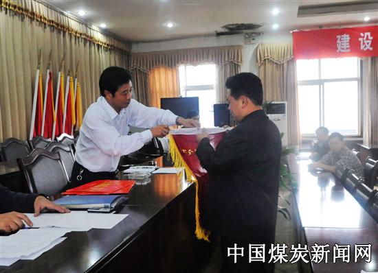 ![]() 为该矿矿长张遵海为获奖单位颁发锦旗及奖金。(卢攀登/摄影报道);