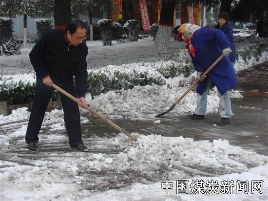 本网讯:11月12日,铺天盖地的第一场大雪装扮了澄合王村煤矿,在给该矿职工带来欢乐的同时,也给职工出行带来了不便。为此,该矿党政领导积极组织机关全体人员进行义务扫雪,他们不畏严寒,带着铁掀、扫帚对矿区道路和各个生产、生活场所进行下彻底清扫,经过数小时的奋战,终于将部分路段的积雪清扫干净,为职工上下班安全出行创造条件。
