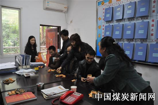 从10月份起,该公司紧紧围绕“抓住安全,突出标准化,共克困难,圆满实现全年各项工作目标”的主题,以达到月度安全无轻伤以上事故,现场无重大安全隐患,无重大“三违”,月度工程质量达优良品,月度生产任务完成目标计划,各专业质量标准化考核达规划等级为竞赛条件,开展安全攻关劳动竞赛。该公司采煤一队全体干部职工心往一处想,劲往一处使,使原煤产量节节攀升,10月份该队生产原煤7808吨,超目标计划的11.54%;掘进二队是该公司一支敢打硬仗、敢于克服困难、敢创一流业绩的队伍,截止10月底,完成掘进进尺93米,超额完成了公司下达目标计划的10.71%,且实现了零违章零受伤。该公司女工家属协管员向获得竞赛奖励的采煤一队、掘进二队分别送去光荣糖和光荣烟,同时与获奖单位召开联谊交流会,嘱咐工友们要戒骄戒躁,为他们重安全,多增产呐喊助威。在随后的光荣席上,永荣矿业公司监事长、纪委书记倪明开,副经理杨显平、总工程师黄华良为职工们再次加油鼓劲,希望他们再接再厉,继续发挥先进精神,为建设“五个永荣”做出更大的贡献。采煤一队党支部书记李林中激动地说道:“感谢组织,感谢领导,我们有信心、有决心保持旺盛的精力和良好的生产势头,完成决战四季度的安全生产目标任务”。 图为该公司女工家属协管员为获奖单位职工送光荣烟、光荣糖时的情景。