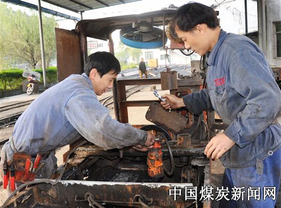 本网讯:近来,四川煤炭产业集团达竹公司小河嘴煤矿在全矿75个生产班组中深入开展了“冲刺50天,岗位保安全”活动,广大班组员工积极参与,从自身岗位查起,找隐患、搞革新,查出隐患50余条,安全技术革新23项,有力促进了安全生产,目前,该矿安全生产形势稳定。图为该矿机电队员工正在检修机车。