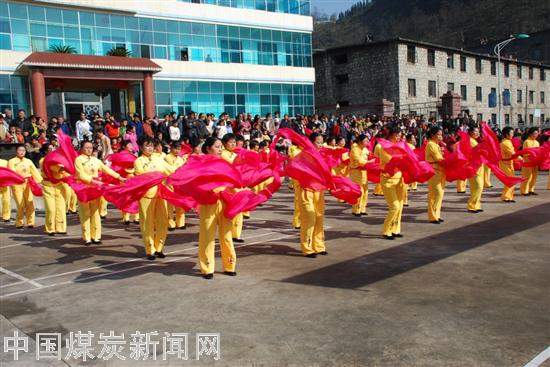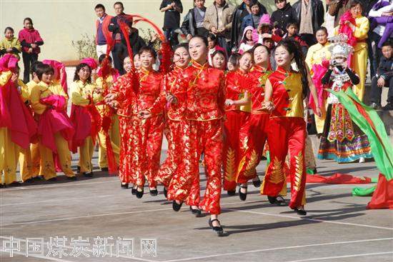 老屋基矿在平田文化广场为职工家属上演了一系列欢快喜庆的文艺节目。激情雄壮的威风锣鼓开场后,该矿的业余舞蹈队表演了《好运来》、《苗家迎着幸福来》等歌舞,离退休总支表演了舞蹈《开门红》等节目,祝愿全矿人民在新的一年里平安顺利,事业蒸蒸日上,为新年的矿区营造了浓浓的节日氛围。图为表演现场。