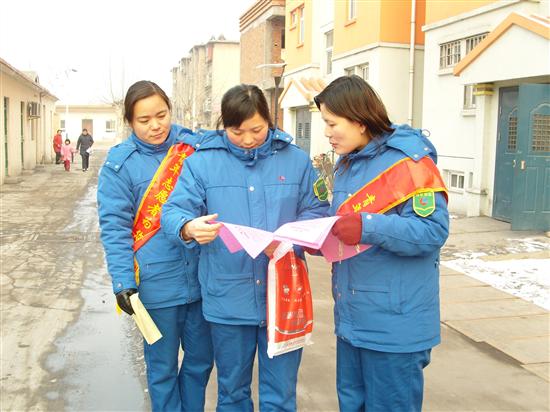 图为工作人员在进行发放煤气宣传单。