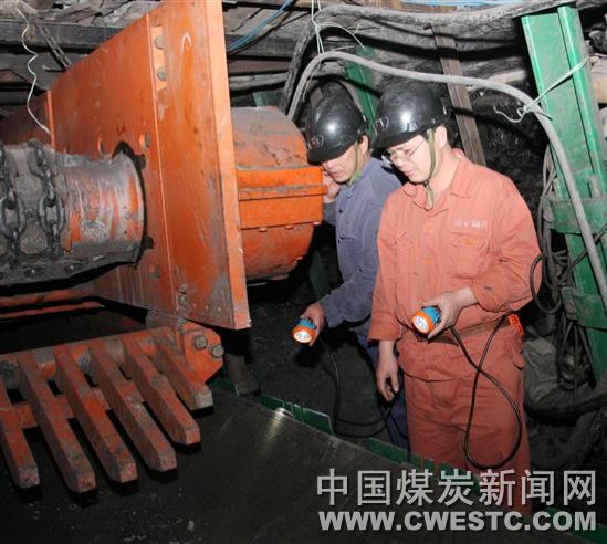 图为马永辉矿长到1500工作面检查综采设备武装情况。