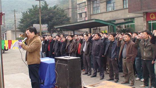 宣誓活动由党委书记、纪委书记、工会主席黄吉沛主持,通风队队长陈明生、通风副总工程师兼通风科科长王建辉就三月倒风季节,瓦斯事故易发的特殊阶段如何抓好“一通三防”工作,过好通风瓦斯关,实现安全生产目标提出了具体保障措施和工作思路。公司安全副总经理江兴涛代表公司党政对全矿安全工作作了具体安排和部署。最后,黄吉沛同志带领全体人员高举右手庄严宣誓:“为了珙泉的兴旺和家庭的幸福,我宣誓——规范操作、三不伤害、绝不违章!” 整个宣誓会场场面庄严肃穆、蔚为壮观,鼓舞了士气,激励了斗志。 宣誓活动结束后,现场举行了“一通三防”知识竞赛和安全谜语竞猜活动。 ![]()