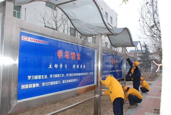 近日,淄矿集团铁运处青工们不忘节后忙清洁,充分利用业余时间,对处区内的宣传栏、各种标识牌进行了全面清洗擦拭,使处区环境得到了进一步美化。图为青工们正在对宣传栏进行清洗擦拭。