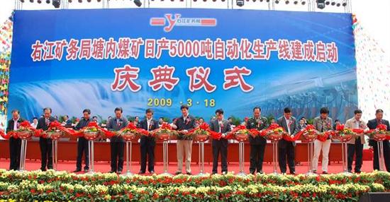本网讯:3月18日, 右江矿务局举行塘内煤矿日产5000吨自动化生产线建成启动庆典仪式。