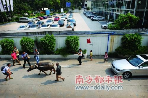 去年发生在广州的“老牛拉宝马”事件,宝马车主正是此次招聘男保姆的马小姐(资料图片)。本报记者谭伟山摄