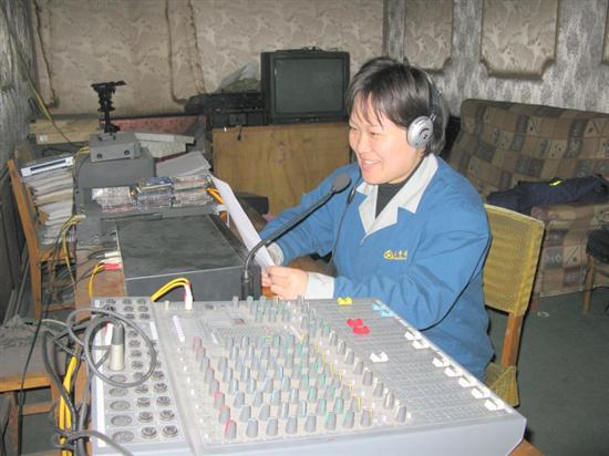 (本网图文)“好花不精心培育就不会开放,生产忽视安全迟早会遭祸殃”、“和安全握握手四季平安,和违章挥挥手万事如意”……每天早晨6:30分,洪亮而又清脆的的嗓音从山东丰源煤电股份有限公司赵坡煤矿井口广播室传来,这是广播员徐海英在准时的向入井职工宣传安全知识。徐海英自1997年大学毕业分进赵坡矿广播室担任广播员以来,自办了《安全顺口溜》、《矿嫂说安全》、《煤海之声》等栏目,深受全矿职工的喜爱,被职工亲切地称为“歌颂安全的使者”。(图为徐海英在播音中)