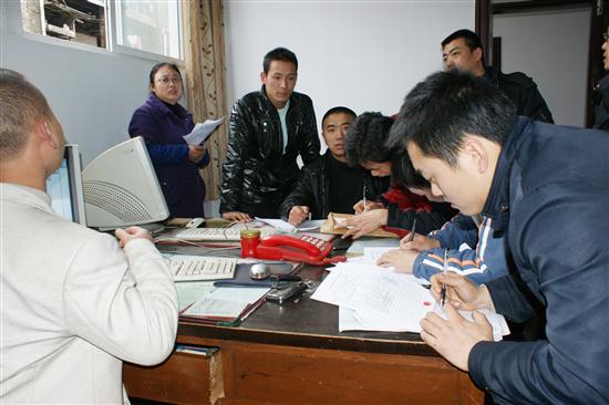 本网讯: 面对国际金融危机影响,重庆能源投资集团天府矿业公司积极为国家排忧解难,面向社会广泛吸纳200名40周岁以下、身体健康、有文化、懂技术的返乡农民工,充实到公司所属的三对生产矿井掘进队,为当地返乡农民工开辟了新的就业渠道。图为天府一矿第一批新招聘的30名农民工正在填写个人简历表。