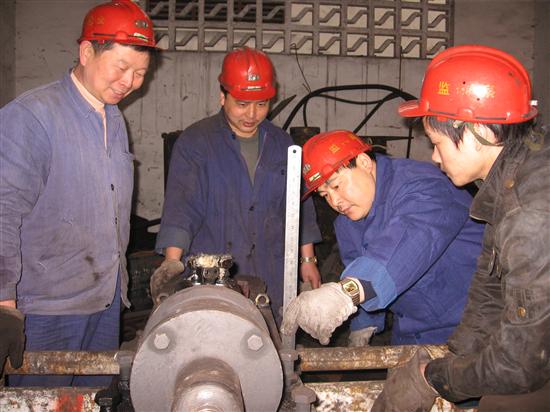 在矿发挥先进性,推进机械化,打造新天府,上第一套综采时,由于2141工作面地质构造复杂,断层多、涌水量大,瓦斯突出严重,成为安装工作中的栏路虎。他在矿党政的支持下,通过实践与摸索,提出了《2141工作面设备安装施工组织优化》及《利用14吨绞车缩皮带拉机头》的建议,经领导同意审核后组织实施。加快了综采安装步伐,创下了重庆能源系统首架掩护式支架四小时安装成功,平均每天安装八点五架,首采一次成功等五个第一的新纪录。有效地解决了过去用人多、耗时长的老大难。在2142综采工作面采煤时,溜子铲煤板经常出现向上翘现象,使综采割下的煤不能有效的运出,导致浮煤增多。他经现场研究、琢磨,提出了解决的办法,用一颗10mm的垫子垫在溜子铲煤板上口,使铲煤板向下倾斜,有效地解决了制约生产的难题。仅每年减少人工清浮煤一项就可为矿节约资金 75600元。在今年综采进程中,工作面瓦斯重,需打排放孔卸压。使用的RYZ原来是放在机架上,用起来又笨重,又不方便,而且摆动大,易断钻杆和伤人,给安全施工带来一定的隐患。于是,他通过反复思考、论证,与该队职工一道进行了改造。烧焊接上抱箍,固定在320溜子上,这样一来,钻机稳定性能好,断钻杆率得到减少,提高了施工安系数,还节约了购置成本,减轻了职工的体力劳动,受到职工的好评。 ![]()