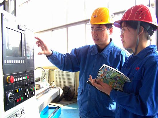 ![]() 3月24日,山东煤机集团莱芜煤机公司高级工程师、破碎机车间主任刘怀成正在指导新进厂的见习大学生侯明对数控机床编程。进入三月份以来,该公司针对新进厂大学生的知识结构、素质能力、特长和个人发展意向,开展“导师带徒学艺”活动,通过签订《导师带徒协议书》,规定见习大学生在导师的指导下,半年内必须完成或参与完成两项工艺创新或技术改造、设计等创新项目,并写出创新说明和经济(质量、安全)项目分析报告,激发广大见习大学生学技术、钻研业务技能、技术创新的热情,积极为他们的成长创造良好的环境。截止目前,该公司已有22名见习大学生与导师签订了协议书。